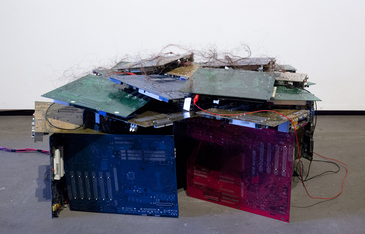 All of these works revolve around what might be called open electronics and explore themes of connectivity, energy and reuse. They also investigate broader ideas relating to electricity, the history of technological artefacts, ecology and experimental practices in the arts. Each uses discarded computer motherboards as the basis for an open electrical system activated by audio feedback, where sound becomes the main indicator of the various energy flows throughout.